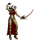 Su estilo se basa en esgrima, pero emplea patadas y utiliza dardos paralizantes contra su adversario.