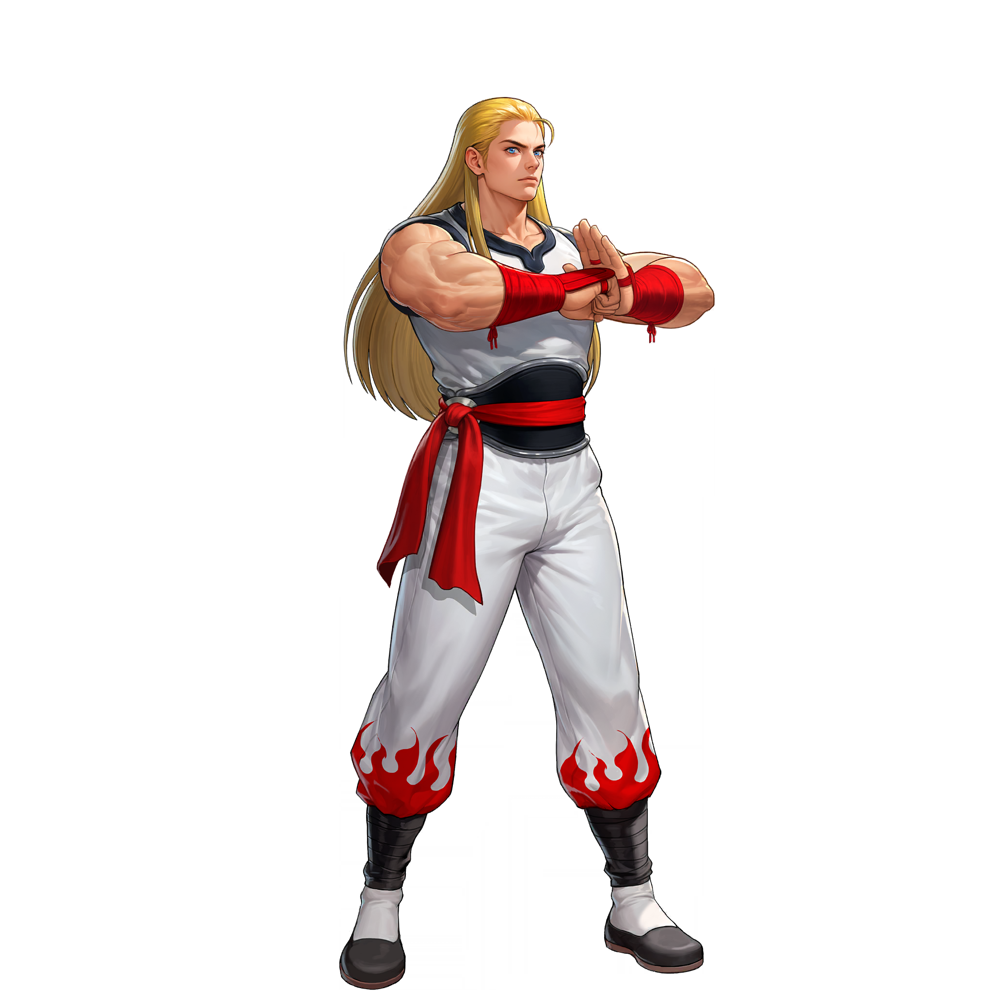 Andy has a unique fighting style that sets him apart from his brother Terry, emphasizing formal martial arts training and the mastery of ancient techniques. Unlike Terry, who incorporates street fighting into his combat style, Andy has rigorously trained in Koppōken, an old Japanese martial art focusing on striking vulnerable points and breaking bones to incapacitate opponents (via a focus on palm thrusts and elbow strikes). After mastering Koppōken, Andy sought to further enhance his skills by training in Shiranui-ryuu Ninjutsu under Hanzo Shiranui. This training allowed him to integrate fast, blink-like movements, chi control, and acrobatic maneuvers into his fighting repertoire.