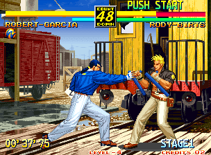 In AOF 3, each character has unique arrays of special moves and Super Death Blows! These moves are strictly particular to the required remaining strength and level of the Rage Gauge in order to be usable, but marvel at their devastating results once you pull them off against your unsuspecting opponent!