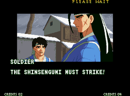Shinsengumi (新選組 or 新撰組) was a special police force that kept peace in the name of the shogunate in Japan. Members were devout believers in bushido (samurai code of honor) though a majority of them were not from samurai families. They were commonly known as "Miburo" (Wolves of Mibu). Fictional members of this group exist in the SNK universe, primarily in The Last Blade series.