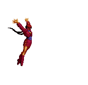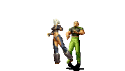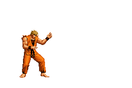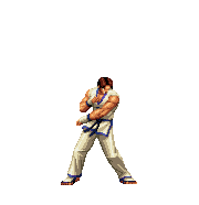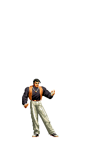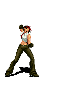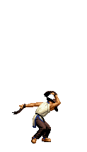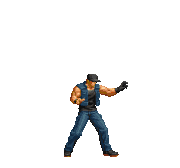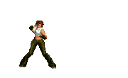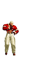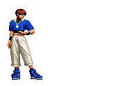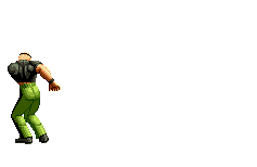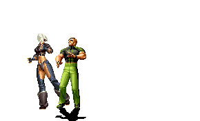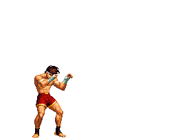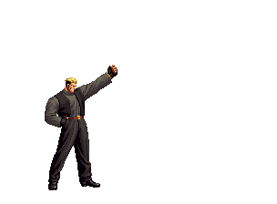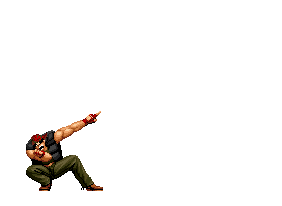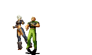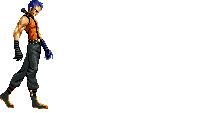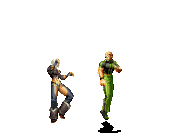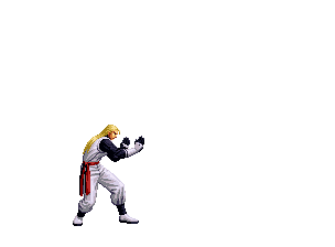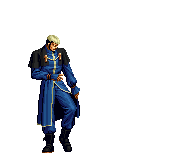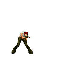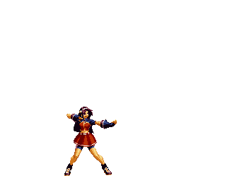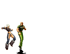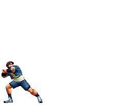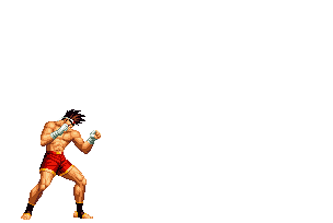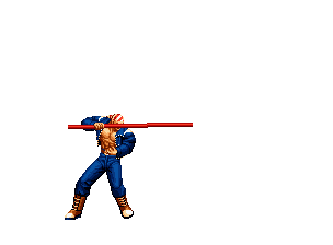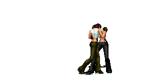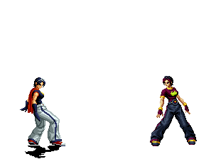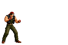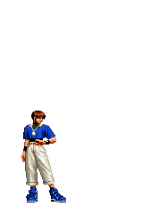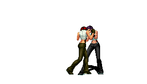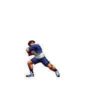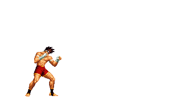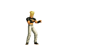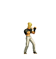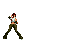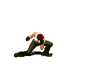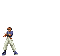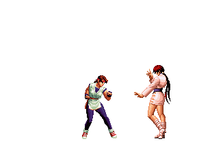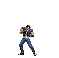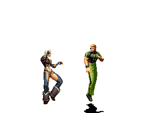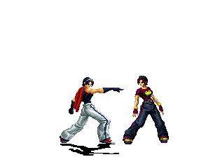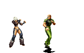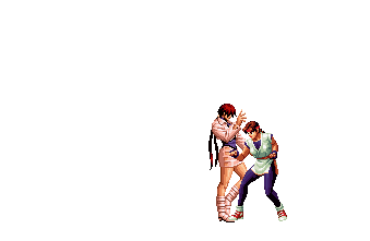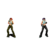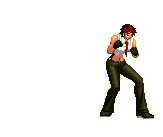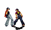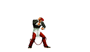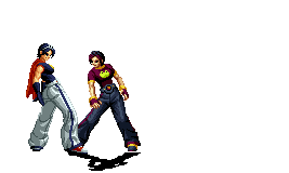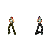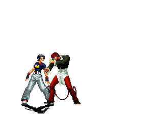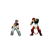 Iori goes into his blood rage, dashes across the screen and, if he hits, totally massacres his opponent. | |