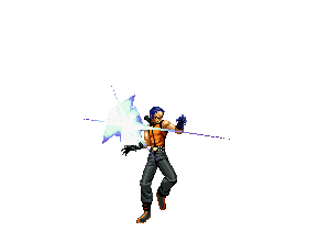 Orochi Chris holds up a finger with a violet flame on its tip. When released, he swipes in front of himself to create a large wake of violet fire. | ||