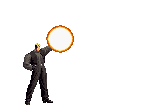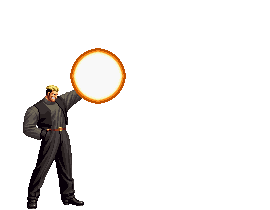 Kusanagi charges flames in his rear hand (and covers himself in flames along), then throws them out in a big wave. | |