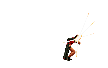 Orochi Shermie kneels down, then flies straight forward along the ground, feet-first, with her body imbued with electricity. The | ||