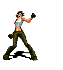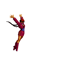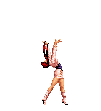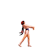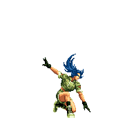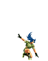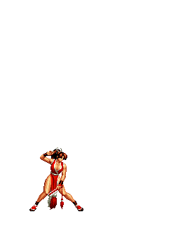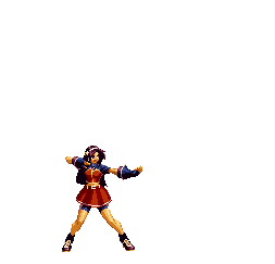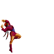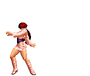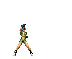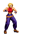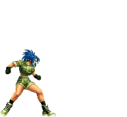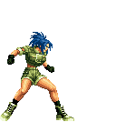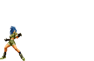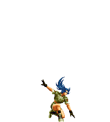 Blue Mary dashes forward. If she hits the opponent, she'll dashes back and forth through the opponent, ending with a spinning fan jump. | ||