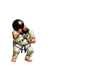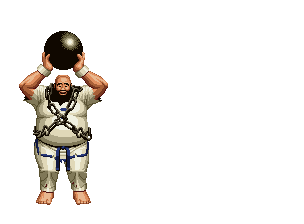 Chang slaps his belly, then repeatedly slams his iron ball on the floor. | ||