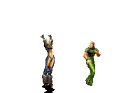 Geese throws his opponent in the air, then strikes them with both palms, blasting them to the back wall. | |
