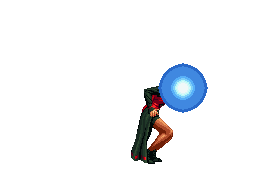 Orochi Shermie draws her hand back, then does a straight jab surrounded by a pulsating orb of electricity. | |
